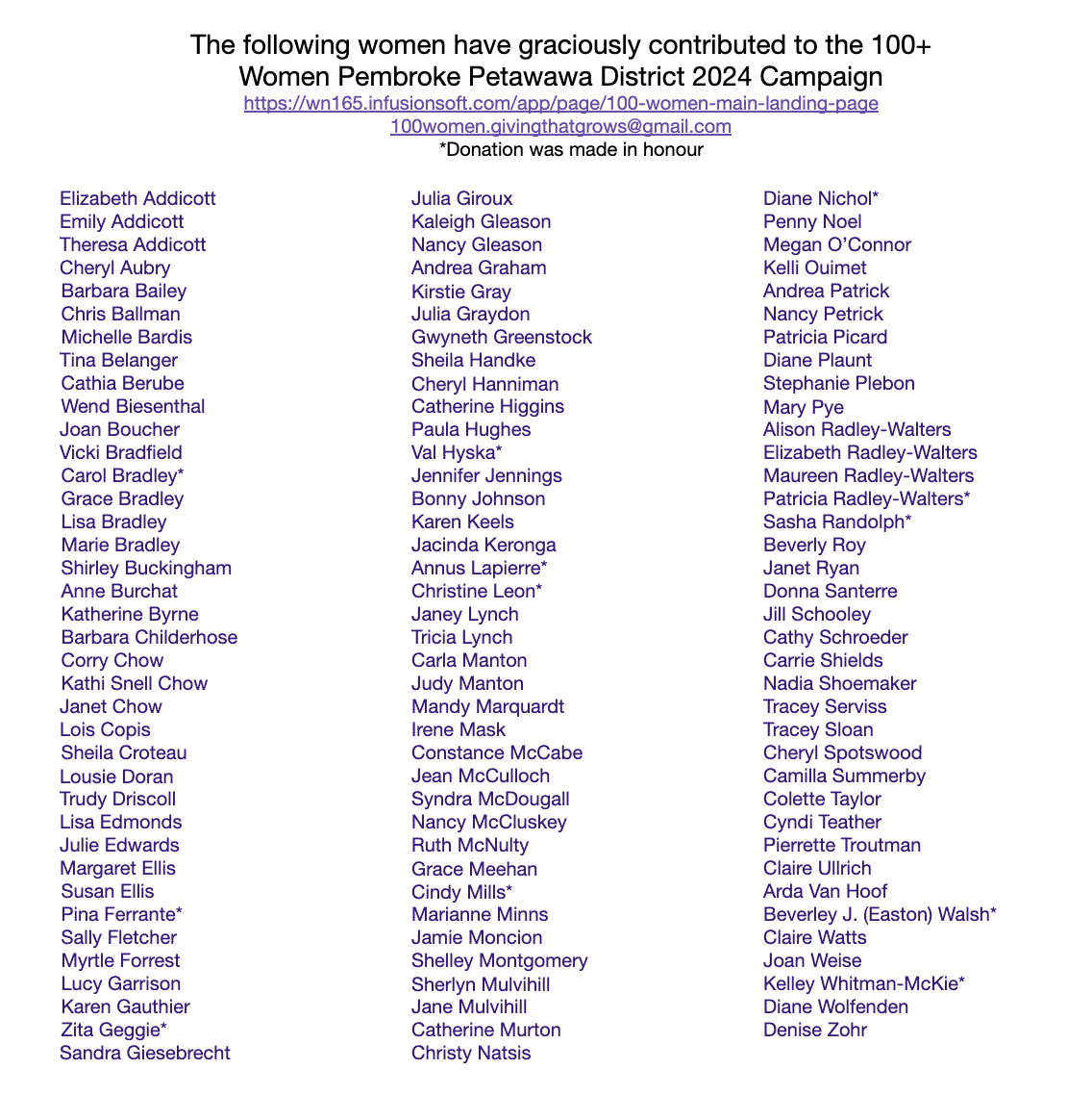 If you would like to donate this year, please let us know!